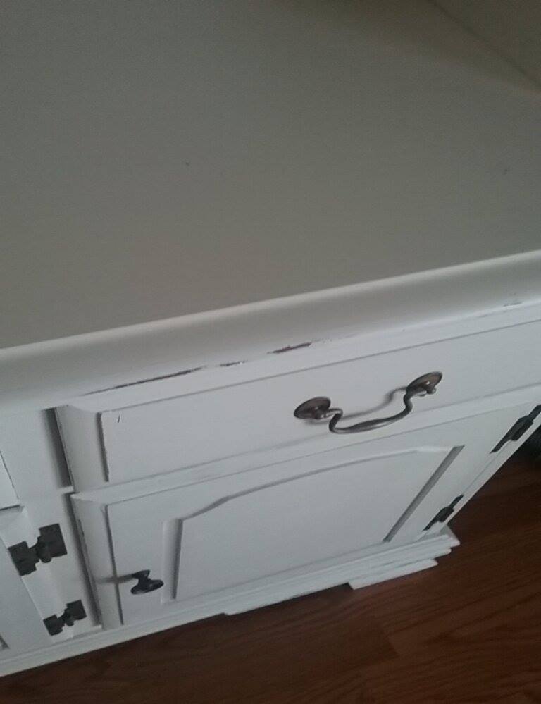 She lightly sanded the edges to add that “antique” flare and kept the original hardware, soaking them in vinegar to clean them.
