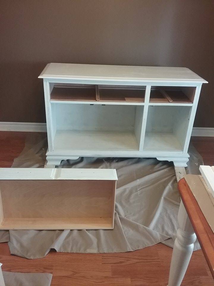 She investigated options and decided to give it chalk-paint makeover. She disassembled the massive piece of furniture and painted it stunning white using a homemade chalk paint recipe.